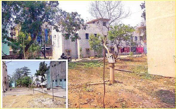 “In the name of development, they  removed the fencing and cement flooring was constructed in the backyards but no fence was constructed. Many of us have open backyards.  We find it difficult to go outstation with the threat of robbers. Despite many warnings,  the youngsters indulge in gambling under trees,” said Padma (name changed), wife of a railway employee.