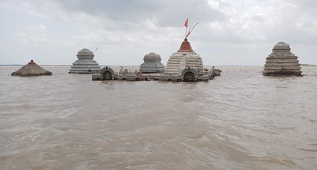 According to recent estimates, nearly 2,50,000 cusecs of flood water has accumulated in the Srisailam Reservoir and its subsequent increase is likely to submerge the temple.