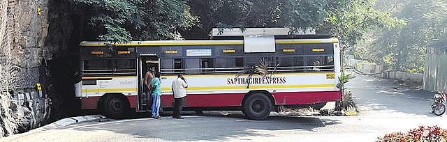 While negotiating a steep curve at the 9th mile on the ghat road, the driver lost control over the vehicle and the bus hit the hill.