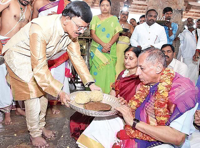 KADAPA: Governor ESL Narasimhan, along with his wife Vimala, offered special prayers at Sri Kodandarama Swamy temple in Vontimitta of Kadapa district on Thursday.