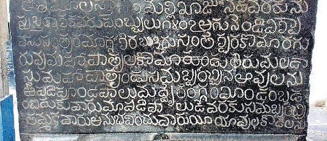 The inscription also details that the responsibility to protect the donation was given to the local chieftains and that curses would befall on anyone who tries to steal the donations. The script and language of the inscription is 15th century Telugu.