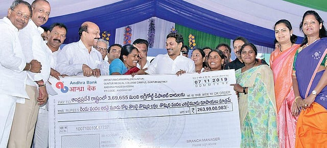 GUNTUR: Fulfilling his promise, Andhra Pradesh Chief Minister YS Jagan Mohan Reddy distributed cheques to AgriGold victims who deposited less than Rs 10,000 in the scam-hit company, at a programme held at the Police Parade Grounds in the city on Thursday. A total sum of Rs 264 crore was released for 3.7 lakh AgriGold depositors.