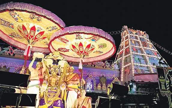 TIRUMALA: The spiritual ecstasy at the temple of Lord Venkateswara reached a fever pitch on Friday on the occasion of the auspicious Garuda Seva. Religious fervour was all-pervasive as lakhs of devotees from different parts of the country converged on the hill shrine to take part in the event.