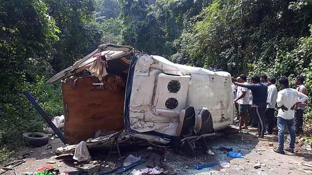 As the Tempo Traveller reached the Valmiki Hill on the ghat road, the vehicle driver lost control and the vehicle fell into the 20 feet gorge.