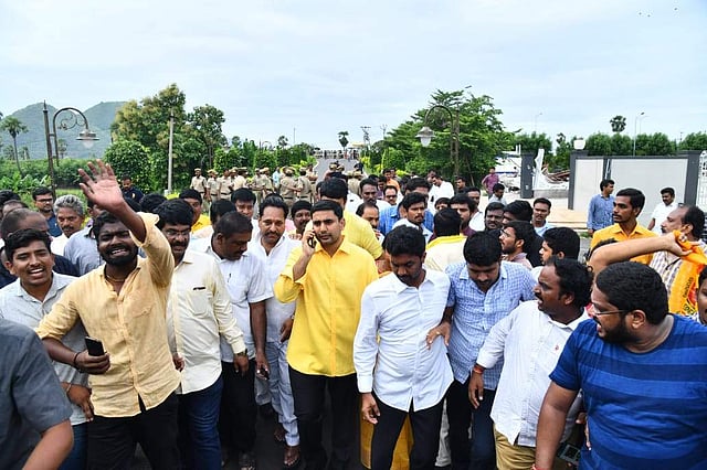 "This is dictatorship, the government is behaving like 'Tuglaq'. We are being stopped in an undemocratic manner. We have seen 100 days and we are asking for the account of these 100 days," said Nara Lokesh.
