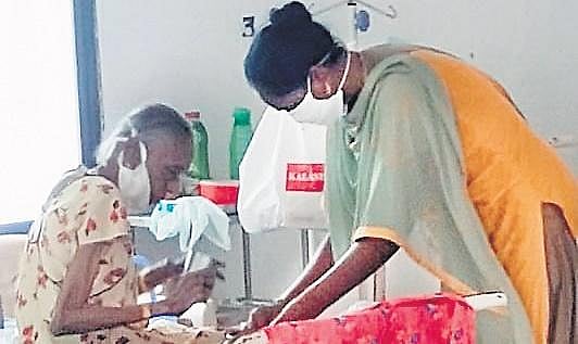 Radhika, a woman constable in Two Town police station of Vizianagaram, was admitted to MIMS about a week ago. A few days later, an 80-year-old woman, a resident of Vizianagaram, was admitted to the hospital with Covid-19 symptoms. Seeing her condition, the woman cop has been helping the 80-year-old patient have her breakfast, lunch and dinner as well as assisting in her other needs. Radhika was rendering services as a member in the coronavirus awareness team formed by SP B Raja Kumari. She contracted the virus while creating awareness among the public on preventive measures. Meanwhile, other Covid-19 patients in the ward clicked a picture and circulated it.