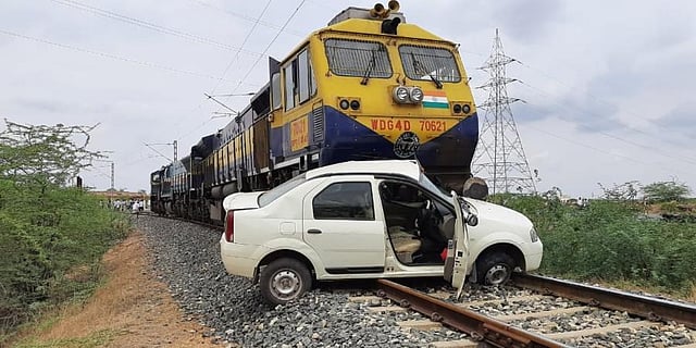 The mishap took place near Y Kodur of Errakuntla Mandal of the district. According to police and railway officials, the car came to a sudden halt on the railway tracks. The pilot of the goods train passing on the track noticed the car and tried to bring it to a halt. Though the loco pilot blew the horn to alert the occupants, they did not get down and the loco engine hit the car at a speed of 20 kmph while the pilot was trying to bring the train to a halt.