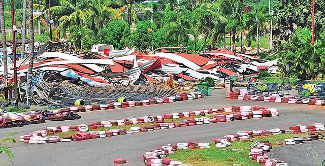 VISAKHAPATNAM: Continuing its drive against ‘encroachment’ of government lands, the Greater Visakhapatnam Municipal Corporation (GVMC) on Saturday razed down the structures at Hub for Youth - Go Karting racing track at Mangamaripeta junction near Kapuluppada on Bheemili beach road for allegedly violating the Coastal Regulatory Zone (CRZ) norms and encroaching the government land.