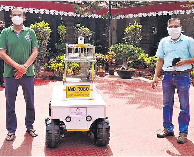 VISAKHAPATNAM: Diesel Loco Shed of Waltair Division has developed a robot that can assist hospital staff in serving medicines and food to Covid patients. Named MeD ROBO, it underwent extensive trials and demonstrations before being deployed for use at Divisional Railway Hospital here. The MeD ROBO is operated through a unique mobile app, and supports WiFi and sensor-based features capable to read patients’ body temperatures while relaying the information to the operator on his mobile phone. In case if it observes any abnormality in the temperature, it will raise an alarm to alert the hospital staff.
