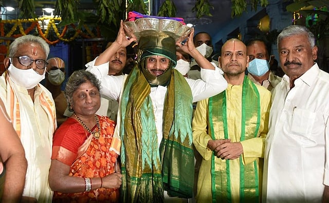 Jagan handed over the silk clothes to the chief priest inside the temple and had darshan of Lord Venkateswara. After darshan, he was offered Vedasirvachanam by Vedic pundits at Ranganayakula Mandapam. Later, the CM participated in Garuda Vahana Seva, the most important event, which is held on the fifth day of annual Brahmotsavams.