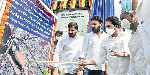 VIJAYAWADA: Chief Minister YS Jagan Mohan Reddy laid the foundation stone for the second phase works of 1.5 km flood protection wall alongside River Krishna between Kanaka Durga Varadhi and Koti Nagar on Wednesday. The Rs 123 project will provide relief to 31,000 denizens residing in Krishna Lanka, Bhupesh Gupta Nagar, Ranigarithota, Balaji Nagar, Dwaraka Nagar, Bhramaramba Nagar and other habitations alongside the river.