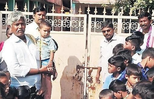 The incident took place at Mandal Parishad Upper Primary School in Soganuru village of Yemmaganur mandal. The parents alleged that no official responded to their complaints after half of the portion of ceilings of two classrooms fell down a few weeks ago.