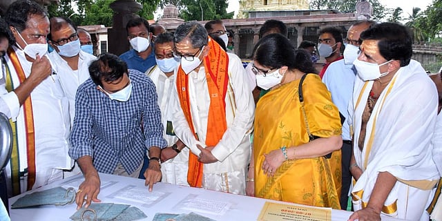 Then he inspected Gathamatam renovation works and observed the ancient copper plate inscriptions, which were found recently during the renovations works. Meanwhile, Archaeology Survey of India unit director Muniratnam Reddy explained to the CJI about the history of the ancient inscriptions plates. Later, the EO gave the CJI the prasadams and a lamination work of the presiding deities.