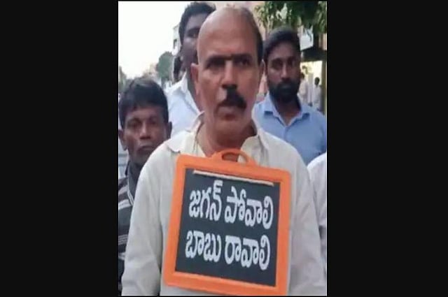 TDP leader Kappera Srinivasulu also vowed that he would remain half tonsured and half-shaved till TDP chief N Chandrababu Naidu comes to power in Andhra Pradesh. He also carried a slate urging people to re-elect Naidu and reject CM YS Jaganmohan Reddy.