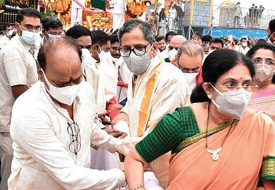 Later he was rendered Veda Ashirvachanam at Ranganayakula Mandapam and was presented theertha prasadam, TTD diary, calendar and a laminated photo of Lord Venkateswara. Supreme Court Judge Justice Uday Umesh Lalith, Andhra Pradesh High Court Chief Justice Prasanth Kumar Mishra, Karnataka High Court Chief Justice Ritu Raj Awasthi, Telangana High Court Chief Justice Satish Chandra Sharma also had the darshan.