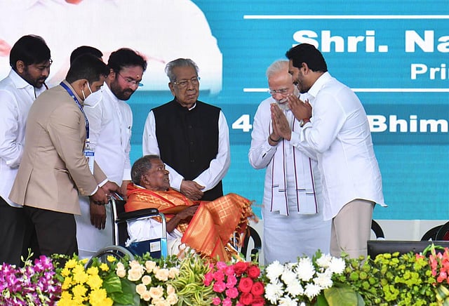 As part of the celebrations, the PM felicitated two heirs or family members of Alluri and his close aide Mallu Dora. After felicitating Alluri Venkatrama Raju (83) and Bodi Dora alias Bodi Raju (89), Modi bowed his head before them.