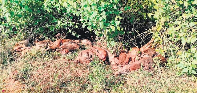 Samples from the carcasses were taken for further investigation.While the forest department is likely to form a special team to probe the killings, locals in nearby villages are being enquired to zero in on the reason for the mass killing.