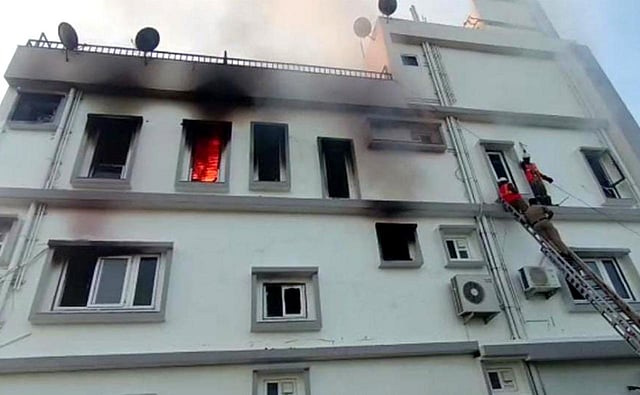 According to information reaching here, the fire broke out at the Karthik private clinic run by Dr Ravishankar Reddy, a radiologist, on the ground floor of his three-storied residential building, around 4 am on Sunday.