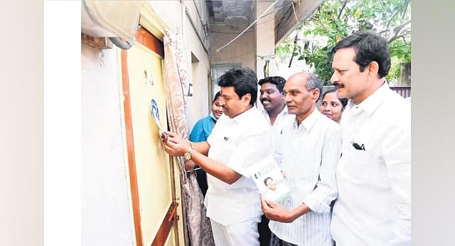 Following this, they paste a sticker of Chief Minister YS Jagan Mohan Reddy on the houses with the people’s consent and also ask them to give a missed call to a number as a gesture of extending support to the government.