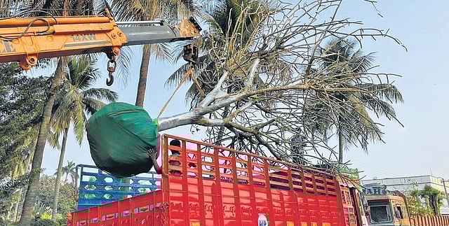 Explaining the process of replantation, nursery owner Palla Vinay said the deep-rooted tree was treated with root canal treatment before being transported. It weighed 5,000 tonnes and was lifted with the help of a crane. “We have also received orders for three ore trees,” he added.