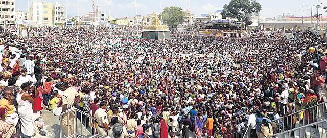 TIRUPATI: An unprecedented flow of devotees participated in the Panchami Theertham at Tiruchanoor on the last day of annual Karthika Brahmotsavams on Saturday.In the morning, the utsava deity of Sri Padmavati Devi on Pallaki Vahanam took out a celestial ride along the Mada streets and blessed the devotees. Thereafter the utsava idol was brought in a procession to the Panchami Theertha Mandapam.