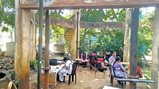 The PHC serves the need of three village panchayats, Kandikuppa, Balusuthippa and Pallamkurru, which have a total population of about 25,000. The health centre has two doctors, a multi-purpose health education officer (MPHEO), multi-purpose health supervisor (female), two staff nurses, lab technician, pharmacist and a sanitary attendant. Asha workers and local secretariat health staff, too, work from the PHC. The staff have found a spot for themselves under an overhead tank near the building to write records. Posts for a public health nurse and a senior assistant at the PHC are still vacant.