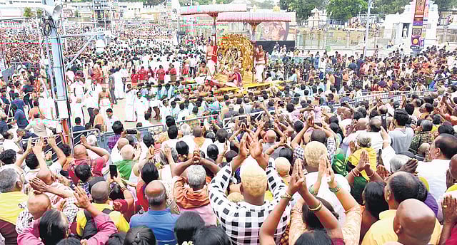 The Garuda Seva would commence at 7 p.m. and would continue till midnight. In a move to ensure hassle-free darshan for the devotees, additional forces have been deployed. Speaking on the drop in footfall in the past four days of the annual fete, TTD Executive Officer (EO) AV Dharma Reddy attributed it to the Ganesh Chaturthi celebrations.