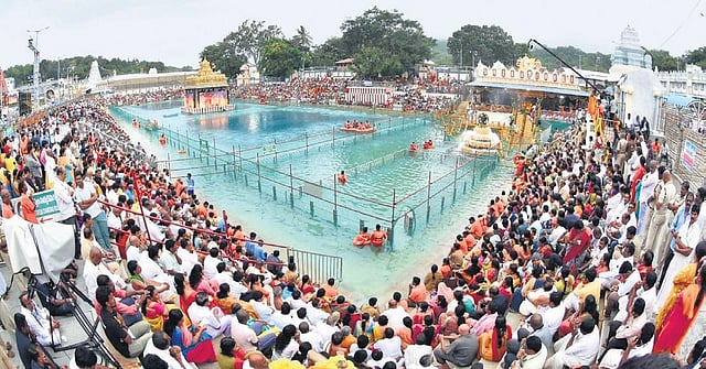 Sudarshana Chakra is a disc-like weapon with 108 serrated edges of Lord Sri Maha Vishnu. In Tirumala, ‘Chakrasnanam’ is performed to Chakrattalwar four times a year during annual Brahmotsavams, Vaikuntha Dwadasi, Ratha Sapthami and Anantha Padmanatbha Vratam. Tirumala Pontiffs, TTD Trust Board Chairman Bhumana Karunakara Reddy, Rajya Sabha MP V Prabhakar Reddy, Executive Officer AV Dharma Reddy, district top brass officials and others were present.