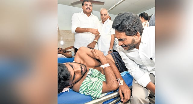 The YSRC chief, along with a host of former MLAs and leaders, on Friday visited Usha Prime Hospital in Anakapalle where workers who were injured in the accident are undergoing treatment.