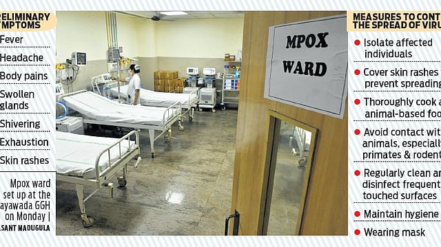 The State’s first mpox isolation ward has come up in Vijayawada with a capacity of six beds. According to Vijayawada Government General Hospital (GGH) Superintendent Dr D Venkateswara Rao, the ward has been equipped with all necessary medical machinery and will be operational from Tuesday. He said the number of beds can be increased if required, as per the instructions from the Health Department authorities. “A team of doctors from General Medicine, Dermatology and Pulmonology, have been appointed to monitor to identify mpox cases,” he added.