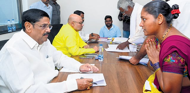 VIJAYAWADA: People in large numbers arrived at the TDP headquarters in Mangalagiri on Saturday, and submitted petitions to Endowments Minister Anam Ramanarayana Reddy, and AP Forest Development Corporation Chairman RV Sujay Krishna Ranga Rao, seeking redressal of their grievances. Most of the complaints were related to land disputes because of the ‘highhandedness’ of YSRC leaders.