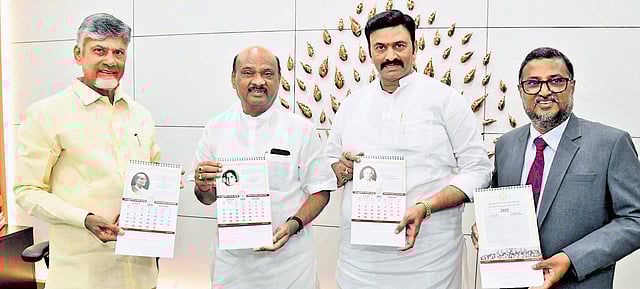 He released the New Year calendar 2025, which contains eminent Telugus who played a pivotal role in drafting the Constitution, at his Undavalli residence on Saturday. He highlighted the greatness of each and every Telugu leader figured in the calendar.