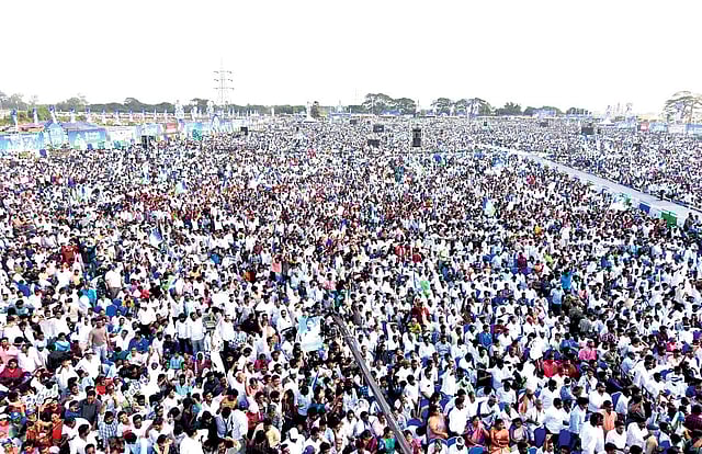 Walking the ramp modelled like the YSRC symbol ‘Fan’ at the venue of the mammoth public meeting, Jagan emphasised that the importance of the ensuing elections is not just to elect MLAs and MPs, but to change the future of the people of the State. “It is only possible with Jagan’s government,” he asserted and highlighted that he has pressed the button 124 times in the last 57 months to credit `2.55 lakh crore into the bank accounts of DBT scheme beneficiaries.