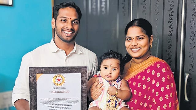 VIJAYAWADA : A four-month-old baby girl from Nadigama town in NTR district has astounded people across the State and beyond showcasing her incredible talent, earning her a world record.