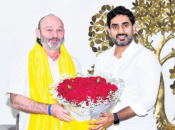 RDT Director Moncho Ferrer called on Minister for Human Resource Development, IT and Electronics Nara Lokesh at the latter’s residence in Undavalli on Sunday.