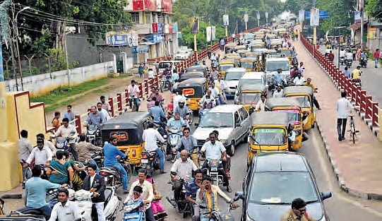 Commuters are facing severe traffic jams, especially at Syamala Nagar and Nehru Nagar railway gate. K Venkateswar Rao, a resident of AT Agraharam said, “When the railway gate is closed, it leads to traffic jams stretching up to 1 km and it takes at least 20 to 25 minutes to clear it. The situation gets worse during 8 am to 10 am and 5 pm to 8 pm, when all school buses and lorries pass through the road.”