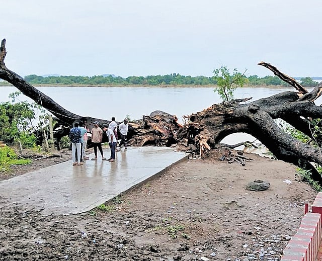 RAJAMAHENDRAVARAM: The 150-year-old Samanea Saman, popularly known as the Nidra Ganneru or ‘Cinema Tree’ of East Godavari district, is on its way to recovery with the efforts of the Rotary Club of Rajamahendravaram ICONS. It may be recalled that on August 5, the tree was uprooted by the floods in the Godavari River. Now, the tree has started showing signs of life with leaves sprouts over the last 15 days. Efforts to revive the tree began in the third week of August.