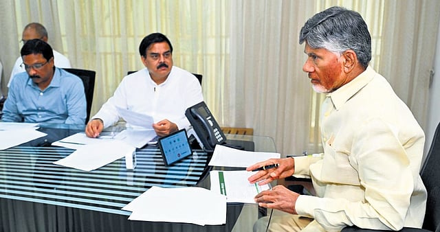 Naidu held a review meeting on civil supplies, agriculture, and marketing wings at his Undavalli residence. Minister for Civil Supplies Nadendla Manohar and officials of all three wings were present.