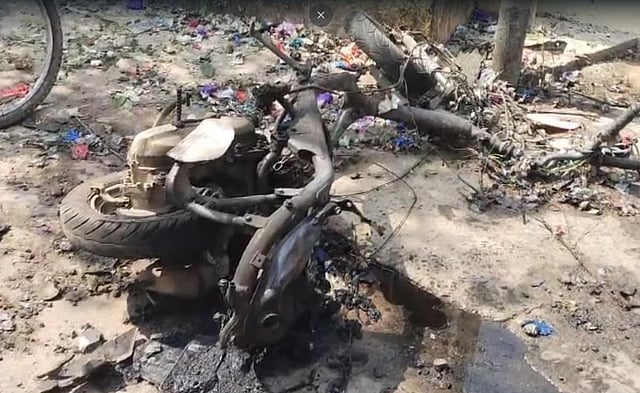 According to police, the impact of the blast was so severe that the legs and other body parts of the two-wheeler rider got dismembered.
