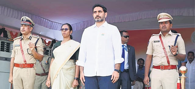 Lokesh hoisted the Tricolour, received a ceremonial guard of honour from the district police, and toured the grounds in an open-top vehicle with District Collector Nagalakshmi before addressing the gathering.