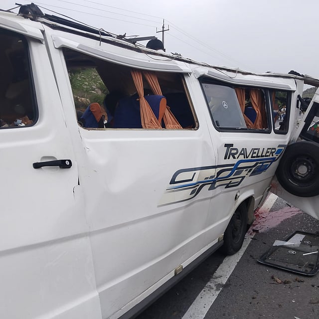 A speeding lorry rammed into a Tempo Traveler on the Chennamarrimitta National Highway. The vehicle was travelling from Madanapalle towards Bagepalli when the collision took place.