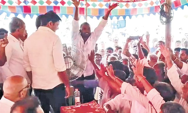 GUNTUR: Tension flared in Ponnekallu village of Tadikonda mandal on Saturday when a group of villagers staged a protest during a Grama Sabha.