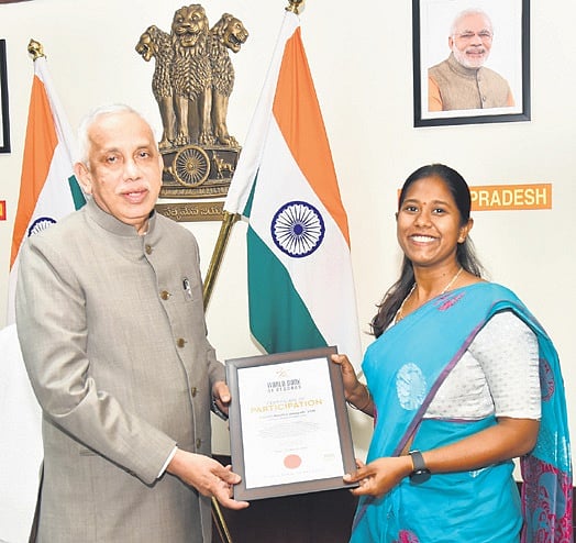 VIJAYAWADA: Governor Justice S. Abdul Nazeer felicitated Major Kavitha Vasupalli, VSM, for her exceptional achievement in adventure sports and service.