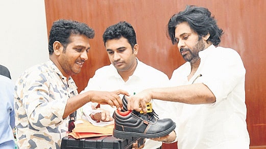 At a meeting held at his Mangalagiri camp office, Deputy Pawan Kalyan said, “The sweat of the working class is the true wealth of this country.” The kits included insulated gloves, shoes, jackets and essential tools. He announced a compensation package of Rs 4 lakh for families of workers who die in accidents and Rs 2 lakh each under the Pradhan Mantri Suraksha Bima Yojana and Chandranna Beema.