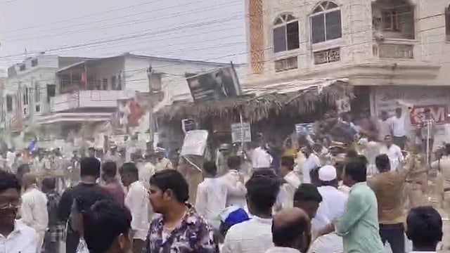 ONGOLE: Four persons, including a police constable and a woman, sustained injuries after cadres of the ruling Telugu Desam Party (TDP) and the YSR Congress Party (YSRCP) resorted to stone pelting, as a tense situation prevailed in Podili town of Prakasam district during former Chief Minister Y S Jagan Mohan Reddy’s visit to the tobacco auction centre on Wednesday.