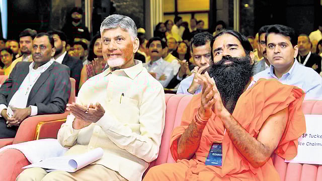 Speaking during the Andhra Pradesh Tourism Conclave Tech AI 2.0 in Vijayawada on Friday, he hailed Chief Minister Nara Chandrababu Naidu as the most visionary leader in the country. “No one in India works with such public interest, creativity, productivity, and professionalism. Chandrababu is a divine gift to the Telugu people,” Ramdev said.
