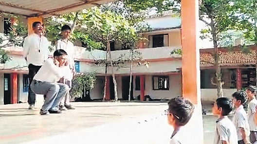 VIZIANAGARAM: In an unusual move, Chinta Ramana, headmaster of Zilla Parishad High School in Penta under Bobbili mandal, Vizianagaram, resorted to self-punishment on Thursday after several students failed to complete their homework and displayed a lack of discipline.