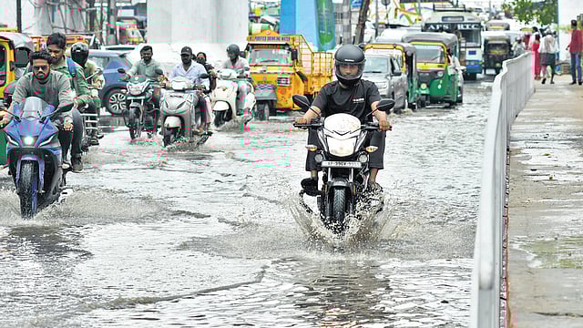 In Vijayawada, the intense downpour led to widespread chaos. Major thoroughfares such as Eluru Road and Besant Road were flooded, triggering severe traffic snarls at key junctions like Benz Circle. Low-lying areas were submerged, making it particularly challenging for two-wheeler riders to navigate the waterlogged streets.