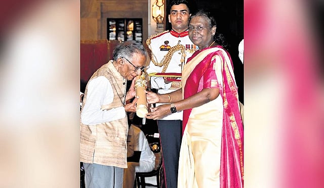 VIJAYAWADA: President Droupadi Murmu conferred the prestigious Padma Shri on noted economist Prof. Kosaraju Leela Krishna for his exceptional contributions to education and literature at the Civil Investiture Ceremony-II held at Rashtrapati Bhavan on Tuesday. Vice President Jagdeep Dhankhar, Prime Minister Narendra Modi, and Union Home Minister Amit Shah were present.