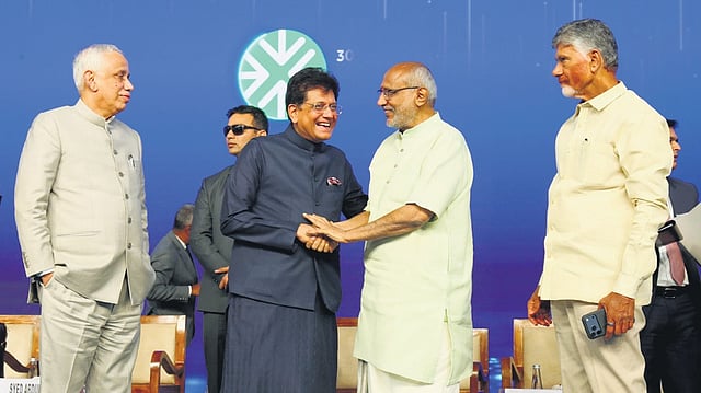 VISAKHAPATNAM: Chief Minister N Chandrababu Naidu along with Union Minister of Commerce and Industry Piyush Goyal virtually laid foundation stones to Drone City and Space City as part of the CII Partnership Summit in Visakhapatnam on Friday.